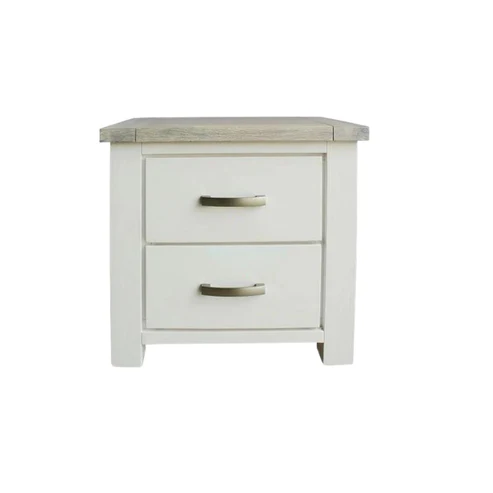 Enhance your bedside with our charming Akron bedside table, expertly crafted from acacia wood and finished in a striking combination of white with Ashwood tops.