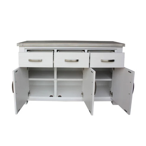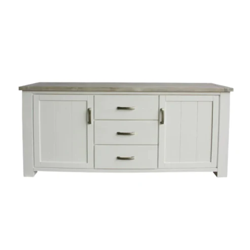 Celebrate modern sophistication with our buffet, meticulously crafted from acacia wood and finished in a striking combination of white with ashwood tops. This versatile piece seamlessly blends rustic charm with contemporary design, making it a standout addition to any dining space.