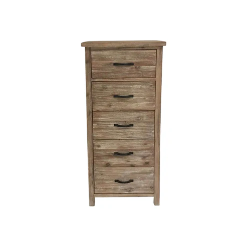 Elevate your bedroom storage with our slimboy crafted from solid acacia wood and finished in a luxurious white wash paint. Standing tall and proud, this piece exudes timeless elegance with a contemporary twist.