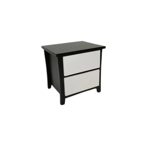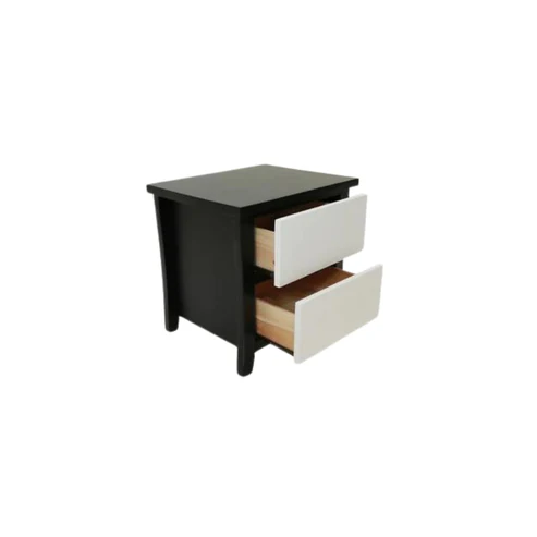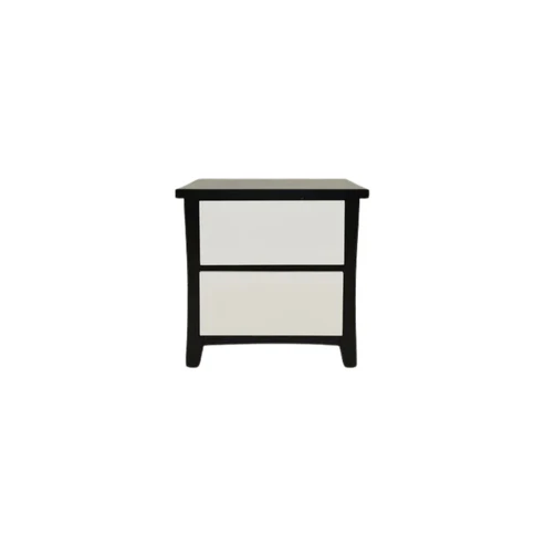 Light up any room with the 2 drawer Dyna Bedside Table. Crafted from solid pine wood and finished in striking white paint with bold black edges, this small but powerful piece of furniture packs a stylish punch.