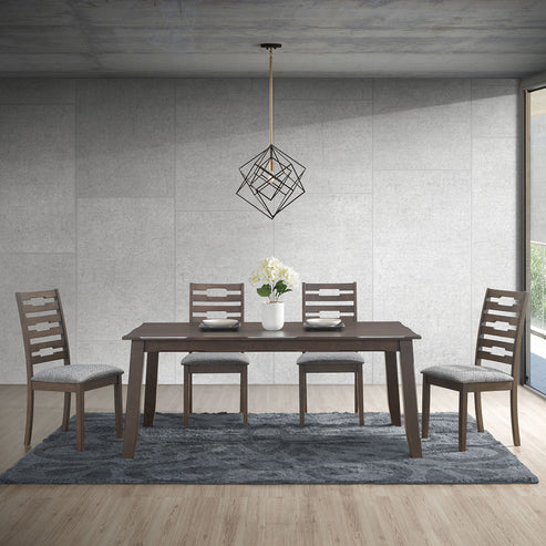 Helena dining suite is an elegant dining set featuring a rectangular table made from solid rubberwood and finished in a warm walnut brown color.