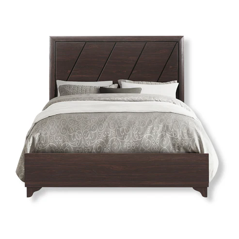 Our stunning platform bed features a beautifully crafted wooden headboard, perfectly blending style and function. Complete your dream bedroom with our exquisite bedroom suite, which includes a dresser, mirror, tallboy, and two bedside tables.